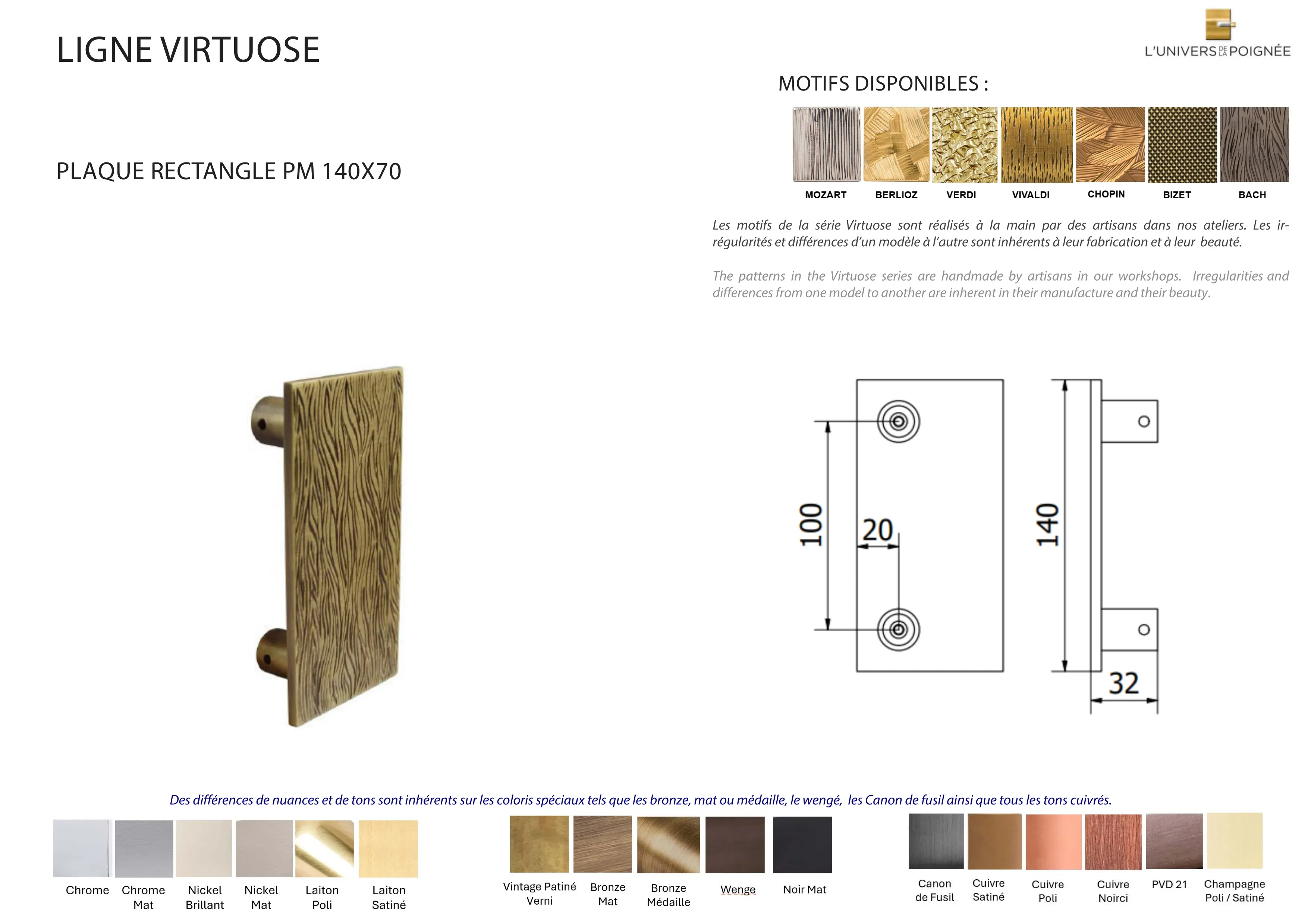 Plaque rectangle VIRTUOSE 140x70mm