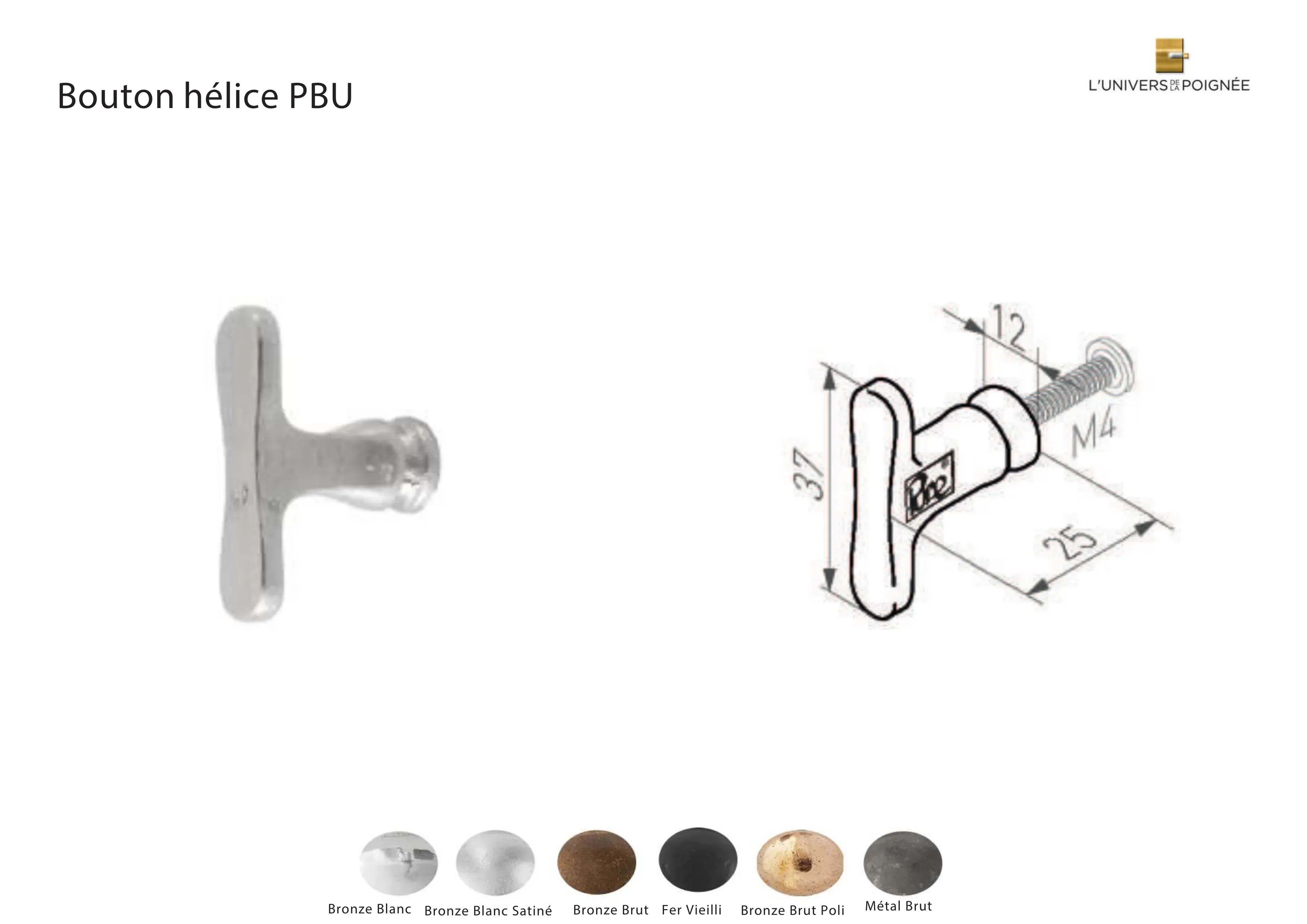 Le Bouton Hélice PBU L, séduit par ses lignes épurées, offrant une esthétique à la fois simple et fantaisiste. Sa forme légèrement prononcée rappelle l’élégance d’un papillon, elle s’intègre parfaitement dans une large gamme de styles, qu'ils soient rustiques ou sobrement modernes.